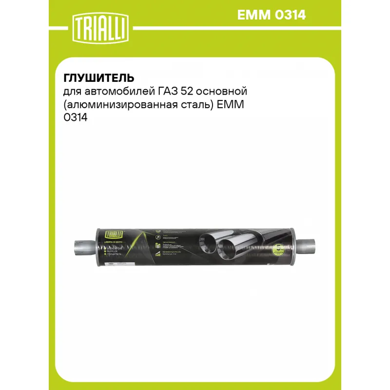 Глушитель для автомобилей ГАЗ 52 основной (алюминизированная сталь) Характеристики: Артикул: EMM 0314 OEM номера: 52-54-1201010-188 Количество на автомобиль: 1 Камеры корпуса: 1 Материал: Алюминизированная сталь Гарантийный срок: 2 года/60 тыс. Особенности конструкции:: Шумопоглощающая набивка E-GLASS Длина изделия (мм): 810 Длина корпуса камеры (мм): 710 Форма изделия: Круг Диаметр перфор. трубы (мм): 45 Диаметр корпуса D-1 (мм): 138 Товарная линейка: BLACK Дополнительная информация: Этикетка изделия может отличаться от представленной на фото Комплектация: Глушитель основной - 1 шт Гарантия: от 1 года.