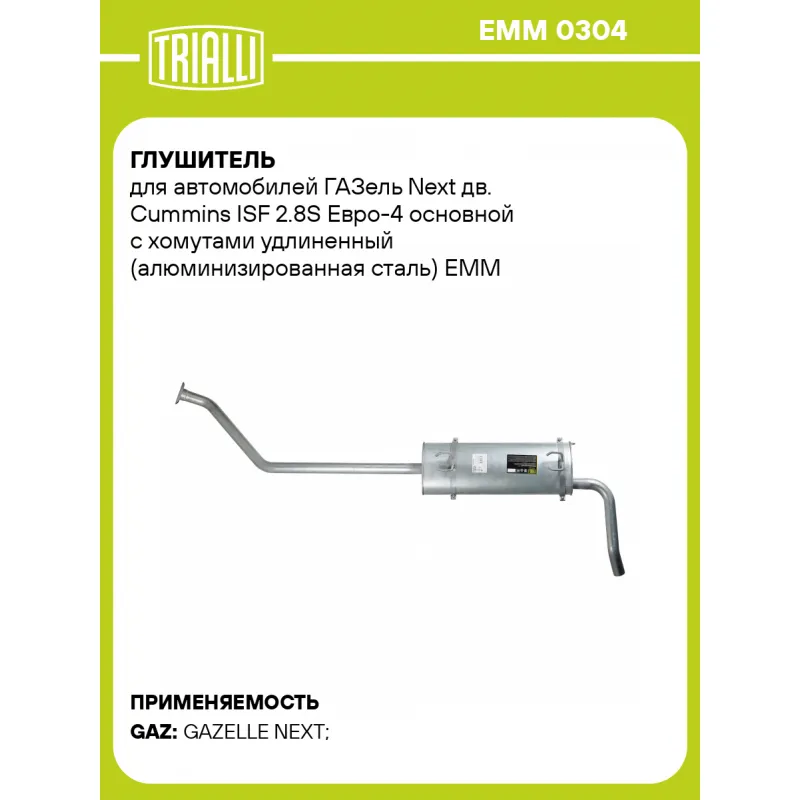 Глушитель для автомобилей ГАЗель Next дв. Cummins ISF 2.8S Евро-4 основной с хомутами удлиненный (алюминизированная сталь) Характеристики: Артикул: EMM 0304 OEM номера: A21R32-1201008, 2132-0-1201008-0, 02132-00-1201008-000 Особенности конструкции:: Шумопоглощающая набивка E-GLASS Гарантийный срок: 2 года/60 тыс. Количество на а... Читать полностью →