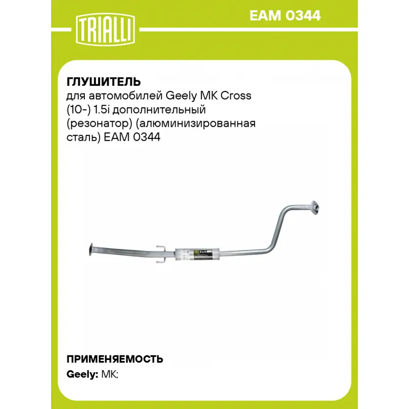 Глушитель для автомобилей Geely MK Cross (10-) 1.5i дополнительный (резонатор) (алюминизированная сталь) Характеристики: Артикул: EAM 0344 OEM номера: 1016002496 Количество на автомобиль: 1 Камеры корпуса: 1 Материал: Алюминизированная сталь Гарантийный срок: 2 года/60 тыс. Особенности конструкции:: Шумопоглощающая набивка E-GLASS Длина изделия (мм): 1820 Длина корпуса камеры (мм): 350 Форма изделия: Круг Диаметр перфор. трубы (мм): 51 Диаметр корпуса D-1 (мм): 101 Товарная линейка: BLACK Дополнительная информация: Этикетка изделия может отличаться от представленной на фото Сопутствующий товар: Глушители основные/глушители дополнительные (резонаторы): EMM 0397 Подходит для авто: Geely MK (08-) Для проверки применяемости отправьте VIN автомобиля через вкладку "Есть вопросы о товаре?" Комплектация: Резонатор - 1 шт Гарантия: от 1 года.
