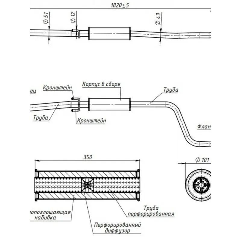 | Особенности конструкции: | Шумопоглощающая набивка E-GLASS |