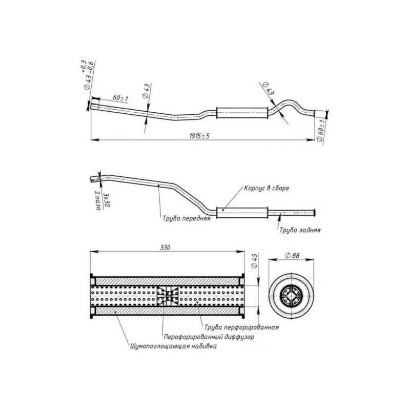| Особенности конструкции: | Шумопоглощающая набивка E-GLASS |