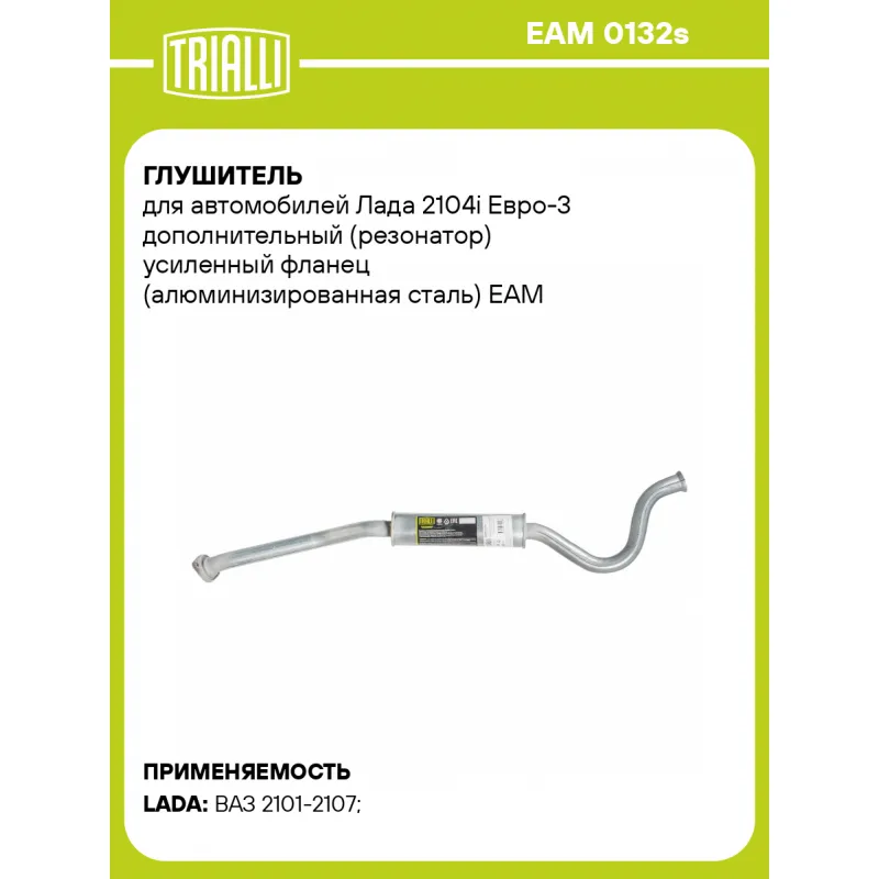 Глушитель для автомобилей Лада 2104i Евро-3 дополнительный (резонатор) усиленный фланец (алюминизированная сталь) Характеристики: Артикул: EAM 0132s OEM номера: 21041202005 Количество на автомобиль: 1 Камеры корпуса: 1 Материал: Алюминизированная сталь Гарантийный срок: 2 года/60 тыс. Особенности конструкции:: Шумопоглощающая набивка E-GLASS Длина изделия (мм): 1195 Длина корпуса камеры (мм): 330 Форма изделия: Круг Диаметр перфор. трубы (мм): 45 Диаметр корпуса D-1 (мм): 88 Товарная линейка: BLACK Дополнительная информация: Этикетка изделия может отличаться от представленной на фото Сопутствующий товар: Глушители основные/глушители дополнительные (резонаторы): EAM 0132 Комплектация: Резонатор - 1 шт Гарантия: от 1 года.