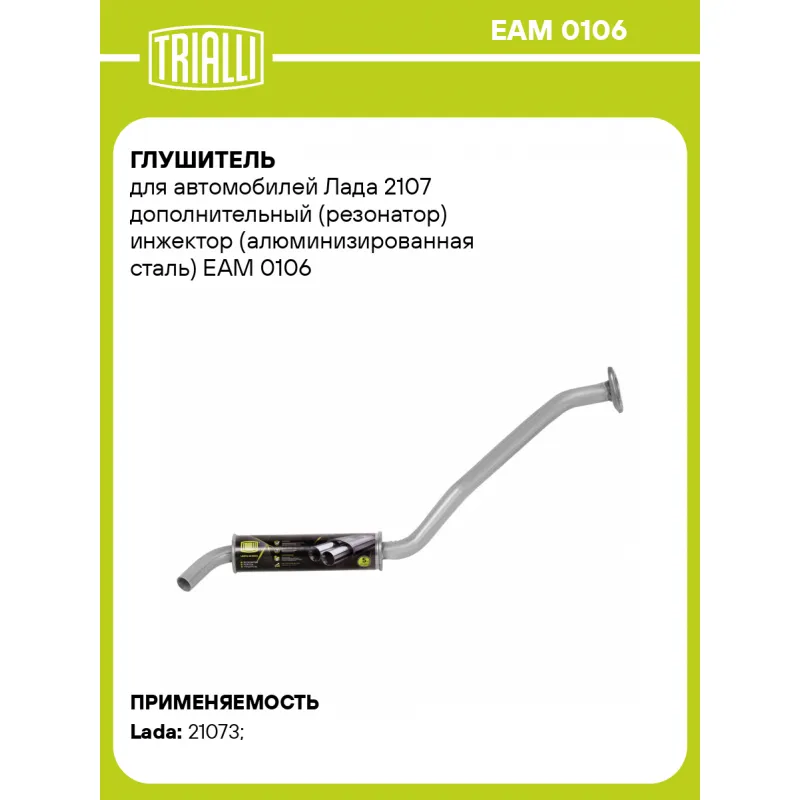 Глушитель для автомобилей Лада 2107 дополнительный (резонатор) инжектор (алюминизированная сталь) Характеристики: Артикул: EAM 0106 OEM номера: 21073-1200020 Количество на автомобиль: 1 Камеры корпуса: 1 Материал: Алюминизированная сталь Гарантийный срок: 2 года/60 тыс. Особенности конструкции:: Шумопоглощающая набивка E-GLASS Длина изделия (мм): 965 Длина корпуса камеры (мм): 330 Форма изделия: Круг Диаметр перфор. трубы (мм): 45 Диаметр корпуса D-1 (мм): 88 Товарная линейка: BLACK Дополнительная информация: Этикетка изделия может отличаться от представленной на фото Сопутствующий товар: Глушители основные/глушители дополнительные (резонаторы): EAM 0106s, EAM 0125, EAM 0125s Сопутствующий товар: Трубы газоприемные: ERP 0102 Подходит для авто: ВАЗ 21073 Для проверки применяемости отправьте VIN автомобиля через вкладку "Есть вопросы о товаре?" Комплектация: Резонатор - 1 шт Гарантия: от 1 года.
