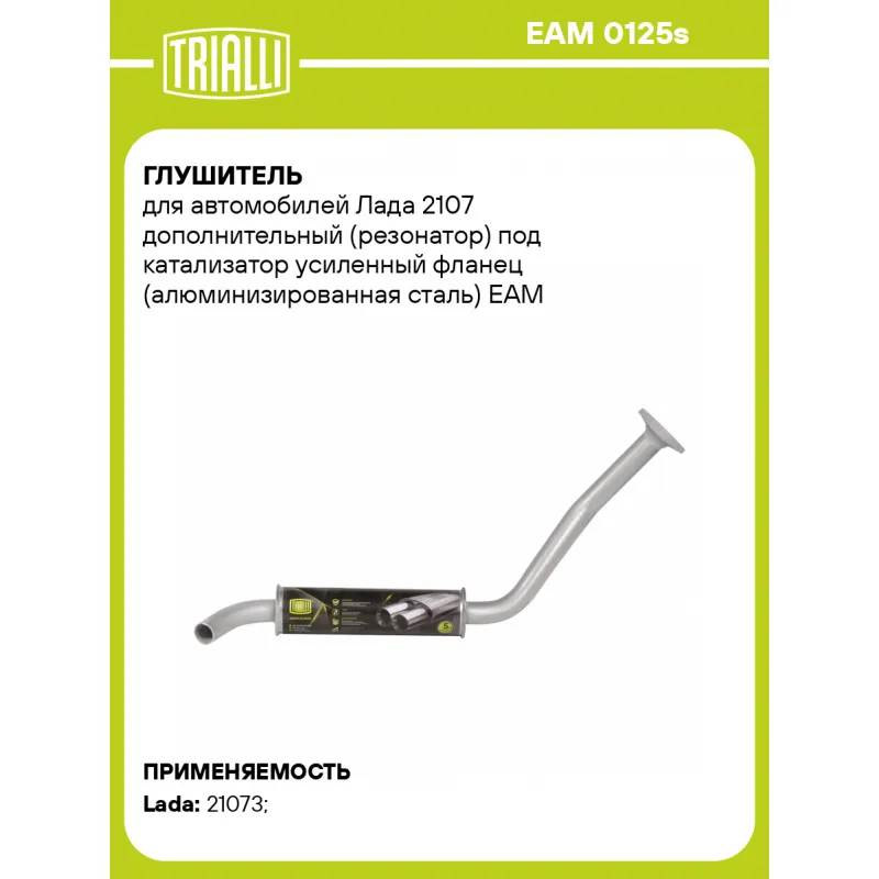 Глушитель для автомобилей Лада 2107 дополнительный (резонатор) под катализатор усиленный фланец (алюминизированная сталь) Характеристики: Артикул: EAM 0125s OEM номера: 2107-1202005 Количество на автомобиль: 1 Камеры корпуса: 1 Материал: Алюминизированная сталь Гарантийный срок: 2 года/60 тыс. Особенности конструкции:: Шумопоглощающая набивка E-GLASS Длина изделия (мм): 860 Длина корпуса камеры (мм): 330 Форма изделия: Круг Диаметр перфор. трубы (мм): 45 Диаметр корпуса D-1 (мм): 88 Товарная линейка: BLACK Дополнительная информация: Этикетка изделия может отличаться от представленной на фото Сопутствующий товар: Глушители основные/глушители дополнительные (резонаторы): EAM 0125, EAM 0106s, EAM 0106 Сопутствующий товар: Трубы газоприемные: ERP 0102 Подходит для авто: ВАЗ 21073 Для проверки применяемости отправьте VIN автомобиля через вкладку "Есть вопросы о товаре?" Комплектация: Резонатор - 1 шт Гарантия: от 1 года.