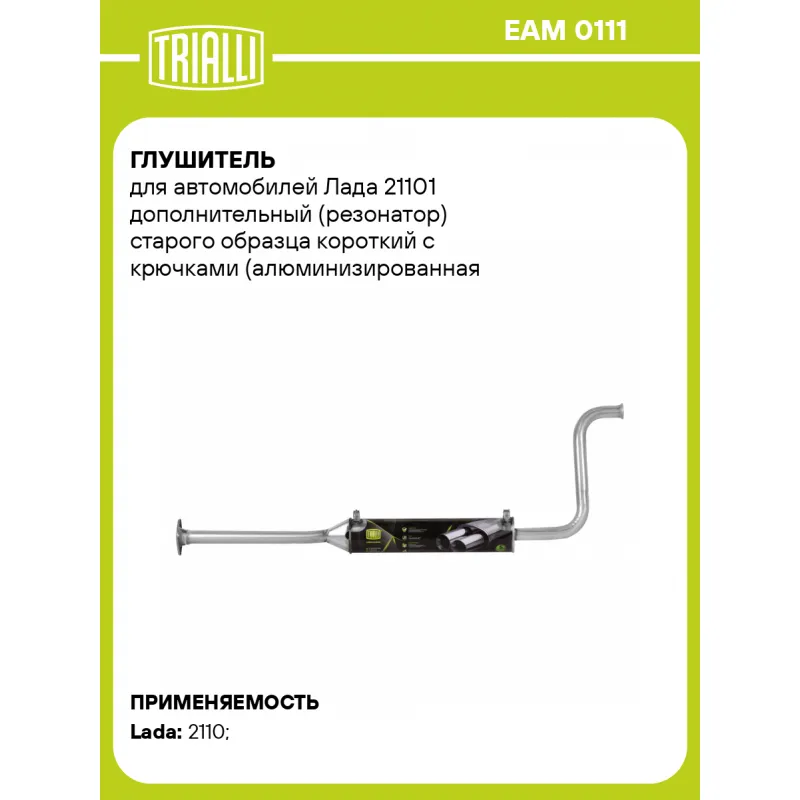 Глушитель для автомобилей Лада 21101 дополнительный (резонатор) старого образца короткий с крючками (алюминизированная сталь) Характеристики: Артикул: EAM 0111 OEM номера: 21101-1200020-10, 21101-1200020-81, 21101120002083 Количество на автомобиль: 1 Камеры корпуса: 3 Материал: Алюминизированная сталь Гарантийный срок: 2 года/60 тыс. Особенности конструкции:: Шумопоглощающая набивка E-GLASS Длина изделия (мм): 1450 Длина корпуса камеры (мм): 540 Форма изделия: Овал Диаметр перфор. трубы (мм): 45 Диаметр корпуса D-1 (мм): 120 Диаметр корпуса D-2 (мм): 87 Товарная линейка: BLACK Дополнительная информация: Этикетка изделия может отличаться от представленной на фото Сопутствующий товар: Глушители основные/глушители дополнительные (резонаторы): EAM 0129, EAM 0111s Сопутствующий товар: Трубы газоприемные: ERP 0126 Подходит для авто: ВАЗ 2110 Для проверки применяемости отправьте VIN автомобиля через вкладку "Есть вопросы о товаре?" Комплектация: Резонатор - 1 шт Гарантия: от 1 года.