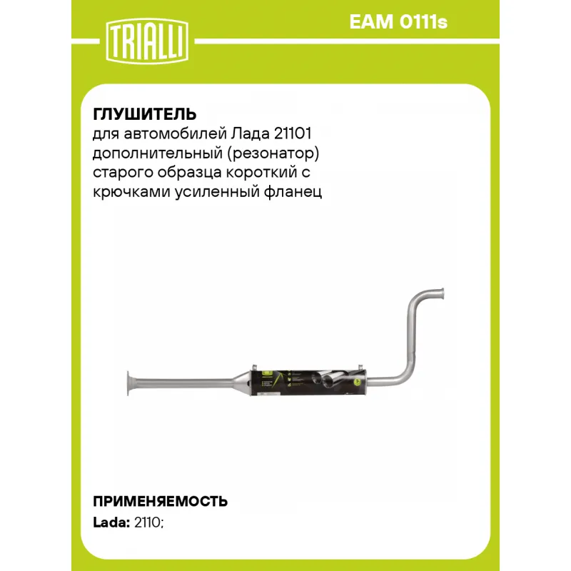 Глушитель для автомобилей Лада 21101 дополнительный (резонатор) старого образца короткий с крючками усиленный фланец (алюминизированная сталь) Характеристики: Артикул: EAM 0111s OEM номера: 21101-1200020-10, 21101-1200020-81, 21101120002083 Количество на автомобиль: 1 Камеры корпуса: 3 Материал: Алюминизированная сталь Гарантийный срок: 2 года/60 тыс. Особенности конструкции:: Шумопоглощающая набивка E-GLASS Длина изделия (мм): 1450 Длина корпуса камеры (мм): 540 Форма изделия: Овал Диаметр перфор. трубы (мм): 45 Диаметр корпуса D-1 (мм): 120 Диаметр корпуса D-2 (мм): 87 Товарная линейка: BLACK Дополнительная информация: Этикетка изделия может отличаться от представленной на фото Сопутствующий товар: Глушители основные/глушители дополнительные (резонаторы): EAM 0129, EAM 0111 Сопутствующий товар: Трубы газоприемные: ERP 0126 Подходит для авто: ВАЗ 2110 Для проверки применяемости отправьте VIN автомобиля через вкладку "Есть вопросы о товаре?" Комплектация: Резонатор - 1 шт Гарантия: от 1 года.