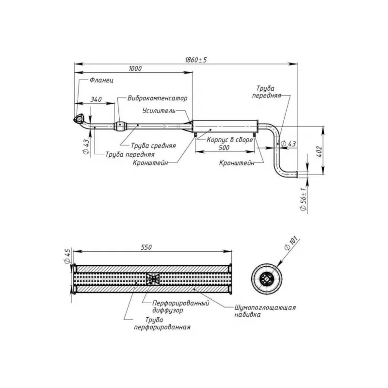 | Особенности конструкции: | Шумопоглощающая набивка E-GLASS |