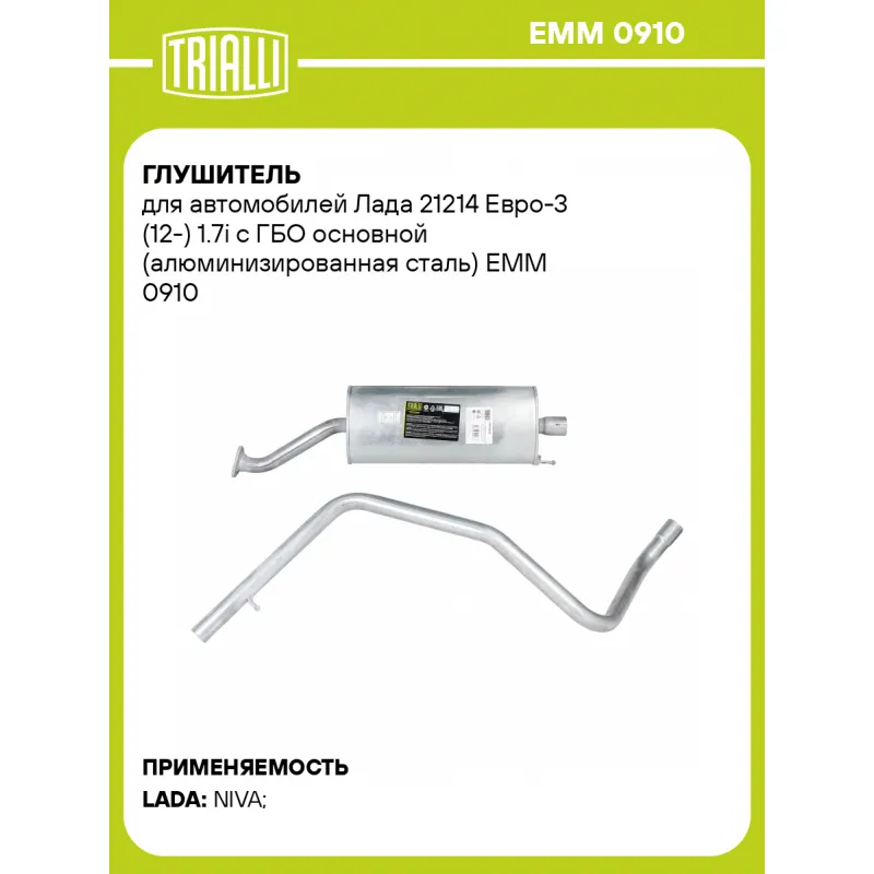 Глушитель для автомобилей Лада 21214 Евро-3 (12-) 1.7i с ГБО основной (алюминизированная сталь) Характеристики: Артикул: EMM 0910 OEM номера: 21214120001030 Материал: Алюминизированная сталь Особенности конструкции:: Шумопоглощающая набивка Гарантийный срок: 2 года/60 тыс. Длина изделия (мм): 1975 Форма изделия: Овал Диаметр корпуса D-1 (мм): 131 Диаметр корпуса D-2 (мм): 221 Длина корпуса камеры (мм): 520 Диаметр перфор. трубы (мм): 45 Количество на автомобиль: 1 Камеры корпуса: 3 Товарная линейка: BLACK Дополнительная информация: Этикетка изделия может отличаться от представленной на фото Комплектация: Глушитель основной - 1 шт Гарантия: от 1 года.