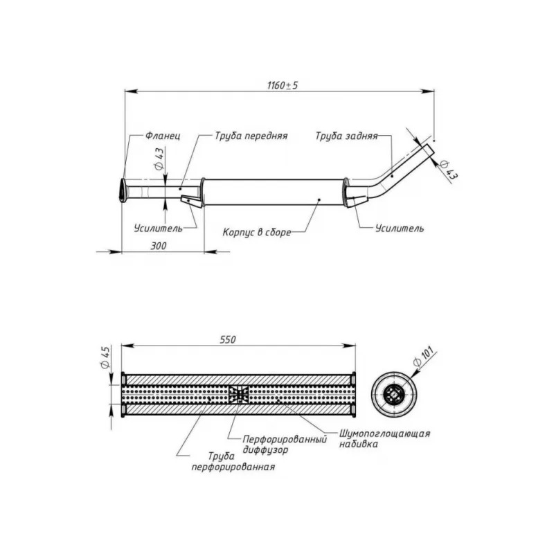 | Особенности конструкции: | Шумопоглощающая набивка E-GLASS |