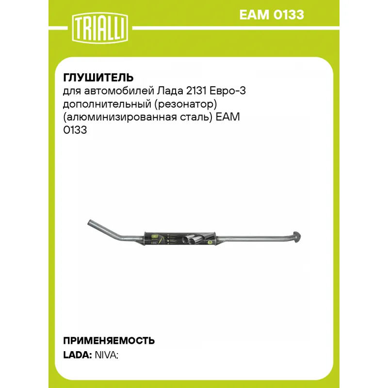 Глушитель для автомобилей Лада 2131 Евро-3 дополнительный (резонатор) (алюминизированная сталь) Характеристики: Артикул: EAM 0133 OEM номера: 21313-1200020-30, 21313-1200020 Количество на автомобиль: 1 Камеры корпуса: 3 Материал: Алюминизированная сталь Гарантийный срок: 2 года/60 тыс. Особенности конструкции:: Шумопоглощающая набивка E-GLASS Длина изделия (мм): 1590 Длина корпуса камеры (мм): 540 Форма изделия: Овал Диаметр перфор. трубы (мм): 45 Диаметр корпуса D-1 (мм): 120 Диаметр корпуса D-2 (мм): 87 Товарная линейка: BLACK Дополнительная информация: Этикетка изделия может отличаться от представленной на фото Комплектация: Резонатор - 1 шт Гарантия: от 1 года.