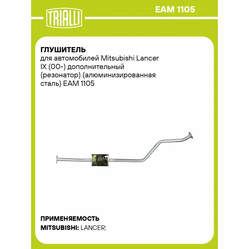 Глушитель для автомобилей Mitsubishi Lancer IX (00-) дополнительный (резонатор) (алюминизированная сталь) Характеристики: Артикул: EAM 1105 OEM номера: MR552606 Количество на автомобиль: 1 Камеры корпуса: 3 Материал: Алюминизированная сталь Гарантийный срок: 2 года/60 тыс. Особенности конструкции:: Шумопоглощающая набивка E-GLASS Длина изделия (мм): 1875 Длина корпуса камеры (мм): 230 Форма изделия: Овал Диаметр перфор. трубы (мм): 45 Диаметр корпуса D-1 (мм): 171 Диаметр корпуса D-2 (мм): 97 Товарная линейка: BLACK Дополнительная информация: Этикетка изделия может отличаться от представленной на фото Сопутствующий товар: Глушители основные/глушители дополнительные (резонаторы): EMM 1105 Комплектация: Резонатор - 1 шт Гарантия: от 1 года.