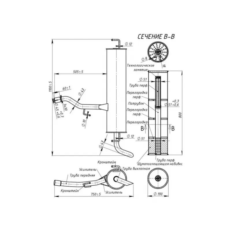 | Особенности конструкции: | Шумопоглощающая набивка E-GLASS |