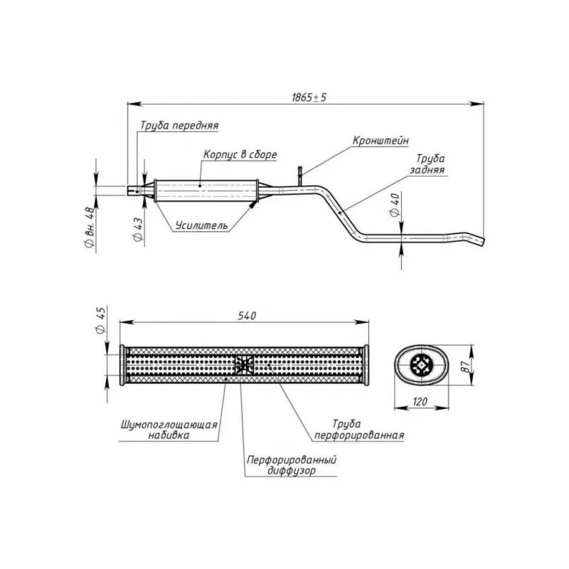 | Особенности конструкции: | Шумопоглощающая набивка E-GLASS |