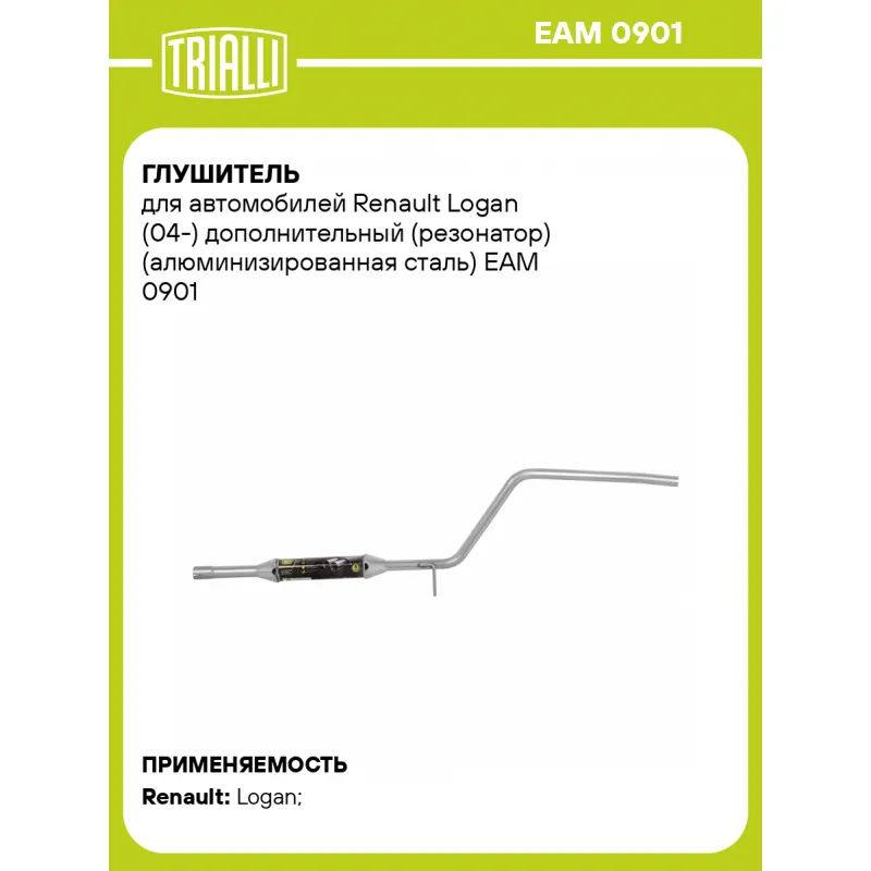 Глушитель для автомобилей Renault Logan (04-) дополнительный (резонатор) (алюминизированная сталь) Характеристики: Артикул: EAM 0901 OEM номера: 6001547674, 6001547675 Количество на автомобиль: 1 Камеры корпуса: 1 Материал: Алюминизированная сталь Гарантийный срок: 2 года/60 тыс. Особенности конструкции:: Шумопоглощающая набивка E-GLASS Длина изделия (мм): 1810 Длина корпуса камеры (мм): 330 Форма изделия: Круг Диаметр перфор. трубы (мм): 45 Диаметр корпуса D-1 (мм): 88 Товарная линейка: BLACK Дополнительная информация: Этикетка изделия может отличаться от представленной на фото Сопутствующий товар: Глушители основные/глушители дополнительные (резонаторы): EMM 0901 Сопутствующий товар: Трубы газоприемные: ERP 0901 Подходит для авто: Renault Logan (04-) Для проверки применяемости отправьте VIN автомобиля через вкладку "Есть вопросы о товаре?" Комплектация: Резонатор - 1 шт Гарантия: от 1 года.
