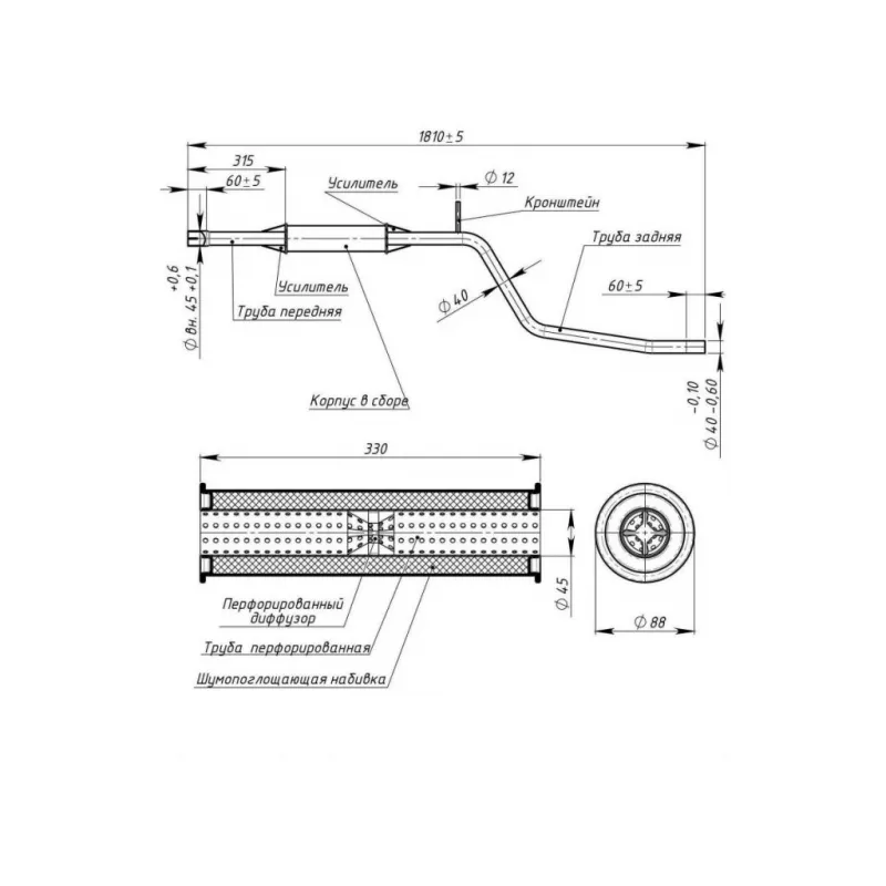 | Особенности конструкции: | Шумопоглощающая набивка E-GLASS |