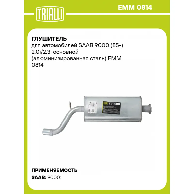 Глушитель для автомобилей SAAB 9000 (85-) 2.0i/2.3i основной (алюминизированная сталь) Характеристики: Артикул: EMM 0814 OEM номера: 4159976, 4525366, 8822223, 8977928, 8979163, 5325006 Особенности конструкции:: Шумопоглощающая набивка E-GLASS Гарантийный срок: 2 года/60 тыс. Количество на автомобиль: 1 Камеры корпуса: 3 Материал: Алюминизированная сталь Длина изделия (мм): 975 Длина корпуса камеры (мм): 490 Форма изделия: Овал Диаметр перфор. трубы (мм): 51 Диаметр корпуса D-1 (мм): 226 Диаметр корпуса D-2 (мм): 136 Товарная линейка: BLACK Дополнительная информация: Этикетка изделия может отличаться от представленной на фото Комплектация: Глушитель основной - 1 шт Гарантия: от 1 года.