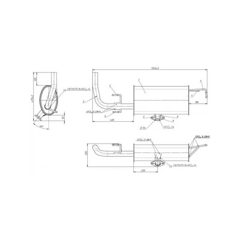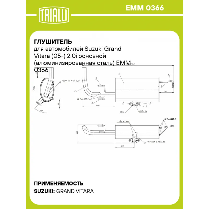 Глушитель для автомобилей Suzuki Grand Vitara (05-) 2.0i основной (алюминизированная сталь) Характеристики: Артикул: EMM 0366 OEM номера: 14300-65J02, 14300-65J00, 14300-65J11, 14300-65J12 Материал: Алюминизированная сталь Особенности конструкции:: Шумопоглощающая набивка E-GLASS Гарантийный срок: 2 года/60 тыс. Сопутствующий товар: Глушители основные/глушители дополнительные (резонаторы): EAM 0374 Длина изделия (мм): 1120 Форма изделия: Овал Диаметр корпуса D-1 (мм): 280 Диаметр корпуса D-2 (мм): 165 Длина корпуса камеры (мм): 540 Диаметр перфор. трубы (мм): 51 Количество на автомобиль: 1 Камеры корпуса: 3 Товарная линейка: BLACK Дополнительная информация: Этикетка изделия может отличаться от представленной на фото Комплектация: Глушитель основной - 1 шт Гарантия: от 1 года.