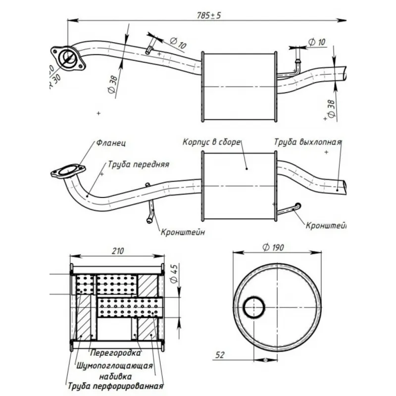| Особенности конструкции: | Шумопоглощающая набивка E-Glass |