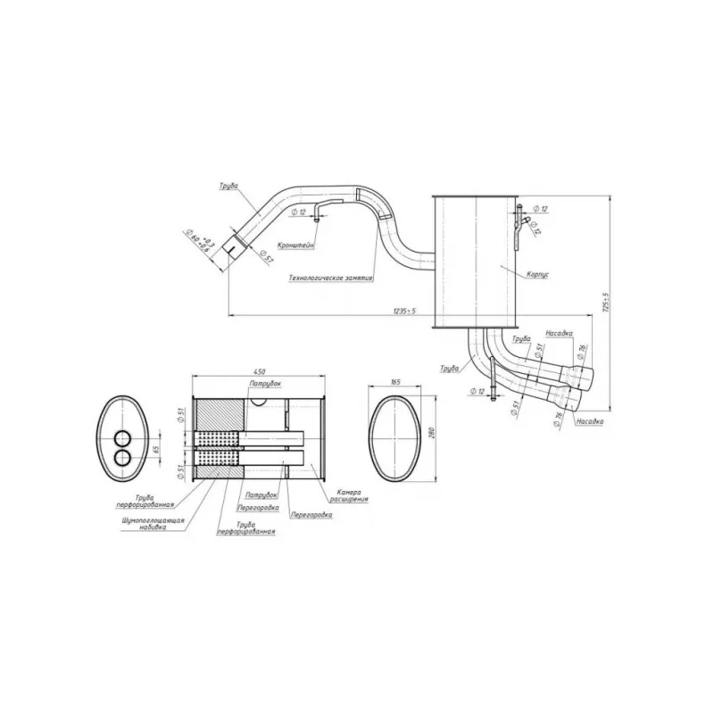 | Особенности конструкции: | Шумопоглощающая набивка E-GLASS |