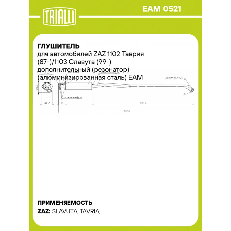 Глушитель для автомобилей ZAZ 1102 Таврия (87-)/1103 Славута (99-) дополнительный (резонатор) (алюминизированная сталь) Характеристики: Артикул: EAM 0521 OEM номера: 110308-1202009 Материал: Алюминизированная сталь Особенности конструкции:: Шумопоглощающая набивка E-GLASS Гарантийный срок: 2 года/60 тыс. Длина изделия (мм): 1650 Форма изделия: Круг Диаметр корпуса D-1 (мм): 93 Длина корпуса камеры (мм): 327 Диаметр перфор. трубы (мм): 45 Количество на автомобиль: 1 Камеры корпуса: 1 Товарная линейка: BLACK Дополнительная информация: Этикетка изделия может отличаться от представленной на фото Комплектация: Резонатор - 1 шт Гарантия: от 1 года.