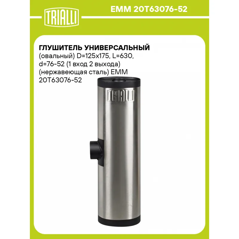 Глушитель универсальный (овальный) D=125x175, L=630, d=76-52 (1 вход 2 выхода) (нержавеющая сталь) Характеристики: Артикул: EMM 20Т63076-52 OEM номера: 20T63076-52 Особенности конструкции:: Набивка жаро-шумопоглощающая Гарантийный срок: 2 года/60 тыс. Длина изделия (мм): 630 Форма изделия: Овал Диаметр корпуса D-1 (мм): 175 Диам... Читать полностью →