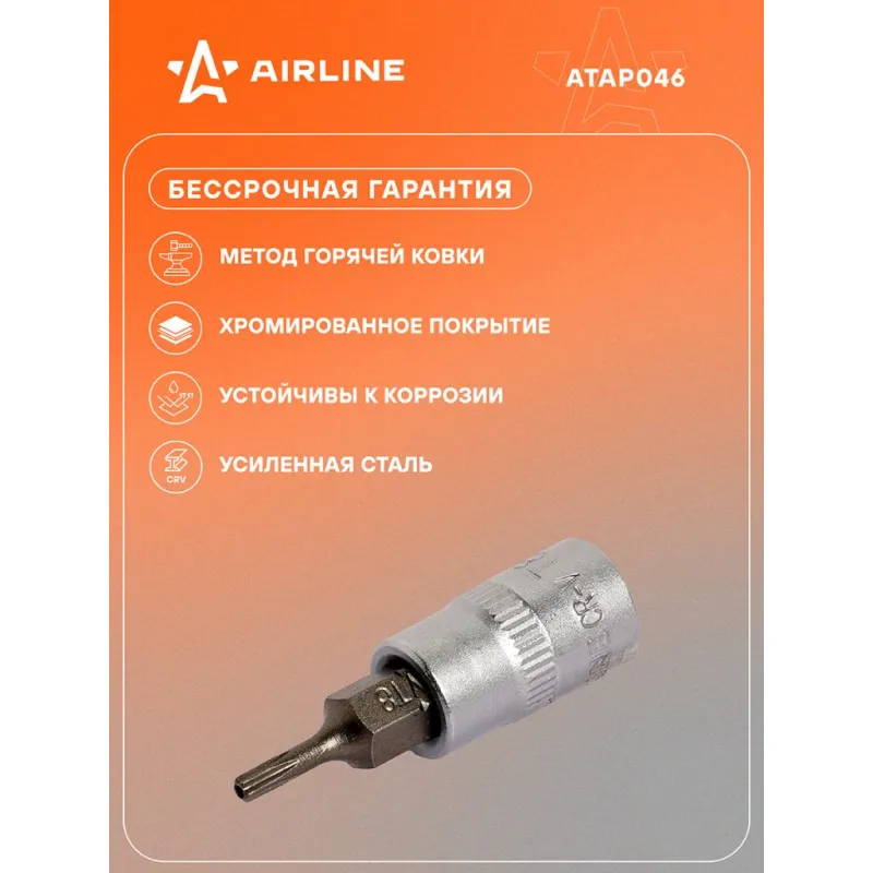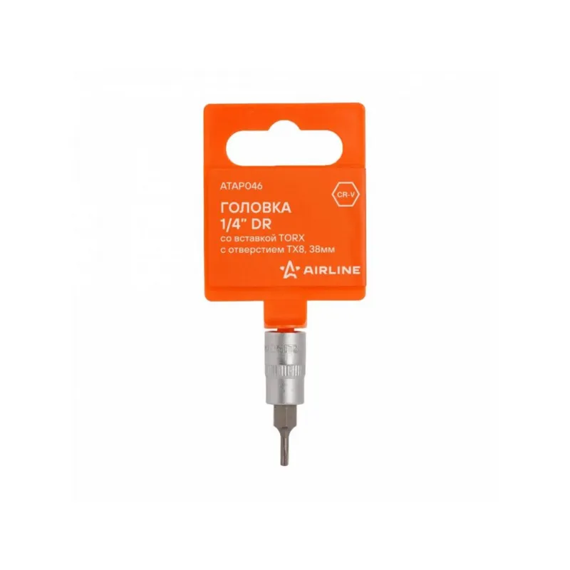 Головка 1/4" DR со вставкой TORX с отверстием TX8, 38мм Описание: Головки торцевые изготовлены из высококачественной хром-ванадиевой стали. Металлические части изготовлены методом горячей ковки, что придаёт им высокую прочность и долговечность. Финишное прочное хромированное покрытие защищает инструмент от воздействия коррозии, делает его более износостойким и легко очищается от загрязнений. Характеристики: Артикул: ATAP046 Размер: ТX8 Длина, мм: 38 Комплектация: Головка - 1 шт Гарантия: от 1 года.