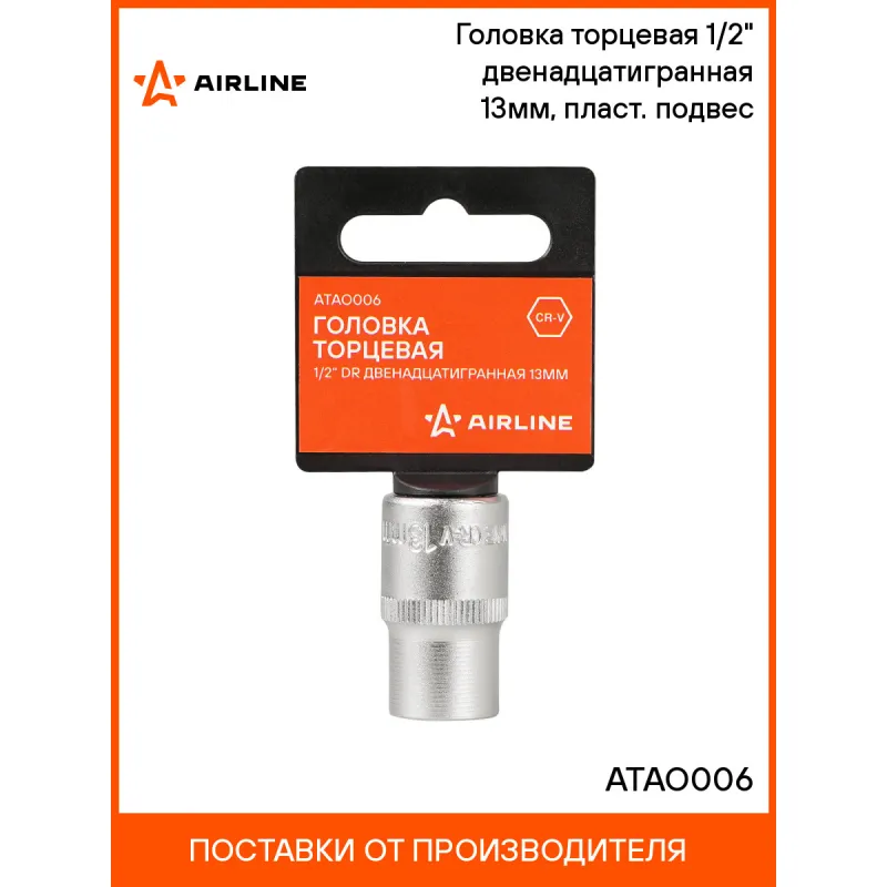 Головка торцевая 1/2" двенадцатигранная 13мм, пласт. подвес Описание: Головки торцевые изготовлены из высококачественной хром-ванадиевой стали. Металлические части изготовлены методом горячей ковки, что придаёт им высокую прочность и долговечность. Финишное прочное хромированное покрытие защищает инструмент от воздействия коррозии, делает его более износостойким и легко очищается от загрязнений. Продуманный профиль рабочей части торцевых головок смещает пятно контакта с ребра грани на её поверхность, что предотвращает повреждение болтов и гаек даже при самых высоких нагрузках. Характеристики: Артикул: ATAO006 Длина, мм: 38 Размер, мм: 13 Комплектация: Головка - 1 шт Гарантия: от 1 года.