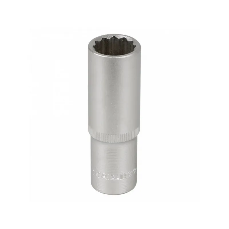 Головка торцевая 1/2" двенадцатигранная 18мм глубокая, пласт. подвес Описание: Головки торцевые изготовлены из высококачественной хром-ванадиевой стали. Металлические части изготовлены методом горячей ковки, что придаёт им высокую прочность и долговечность. Финишное прочное хромированное покрытие защищает инструмент от воздействия коррозии, делает его более износостойким и легко очищается от загрязнений. Продуманный профиль рабочей части торцевых головок смещает пятно контакта с ребра грани на её поверхность, что предотвращает повреждение болтов и гаек даже при самых высоких нагрузках. Характеристики: Артикул: ATAO031 Длина, мм: 78 Размер, мм: 18 Комплектация: Головка - 1 шт Гарантия: от 1 года.