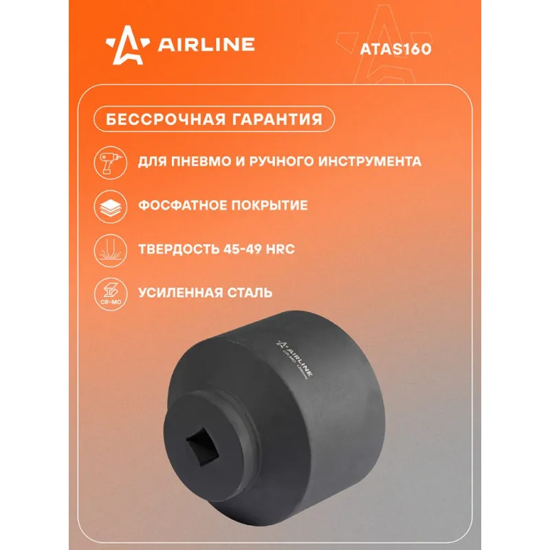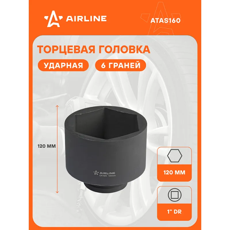 Головка ударная торцевая 1"DR шестигранная 120мм, L=120мм Описание: Головка ударная торцевая 1" DR шестигранная ATAS160 бренда AIRLINE Головка рассчитана на использование совместно с пневматическим гайковёртом и усилителем крутящего момента. - Материал - сталь 42CrMo; - Твердость - 45-49 HRC; - Покрытие - фосфатирование; - Материал обеспечивает стойкость к высоким нагрузкам. - Ударные головки для гайковерта, электроинструмента, пневмогайковерта, ручного инструмента и шуруповерта облегчат выполняемые задач. - В корпусе есть сквозное отверстие под штифт. Применение головки: при сборке и разборке узлов автомобиля, для монтажа и демонтажа колес легковых и грузовых автомобилей, в шиномонтажах, автосервисе, СТО. Рекомендуется для профессионального использования. Ударная торцевая головка дополнит набор инструментов для автомобиля который удобно хранить в багажнике машины, гараже, дома, а также легко транспортировать. Ударные головки значительно облегчают ремонт автомобиля и сокращают затраченное время на работу. Профессиональный набор инструментов для автомобиля, дома это отличный вариант для подарка мужчине, мужу, дедушке, автомобилисту, на день рождения, новый год, 23 февраля и без повода. Характеристики: Артикул: ATAS160 Присоединительный квадрат: 1" Комплектация: Головка - 1 шт Гарантия: от 1 года.