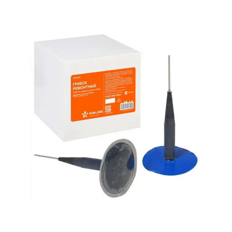 Грибок ремонтный 603С-14 (диаметр ножки 10 мм, диаметр шляпки 50 мм) Описание: Для ремонта проколов и порезов радиальных и диагональных шин (до 25°) Характеристики: Артикул: ATRK92 Диаметр шляпки, мм: 50 Диаметр ножки, мм: 10 Тип вулканизации: Холодная Комплектация: Грибок для б/к шин ремонтный - 1 шт Гарантия: от 1 года.