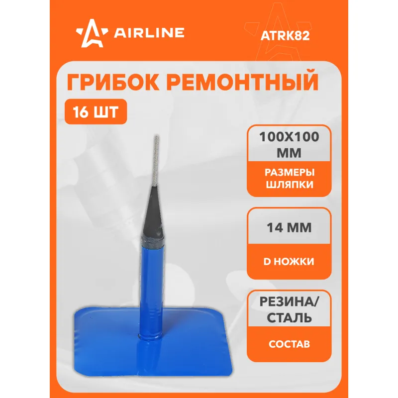 Грибок ремонтный 775 (диаметр ножки 14 мм, размер шляпки 100*100 мм) Описание: Для ремонта проколов и порезов радиальных и диагональных шин (до 25°) Характеристики: Артикул: ATRK82 Диаметр ножки, мм: 14 Тип вулканизации: Холодная Длина шляпки, мм: 100 Ширина шляпки, мм: 100 Комплектация: Грибок для б/к шин ремонтный - 1 шт Гарантия: от 1 года.
