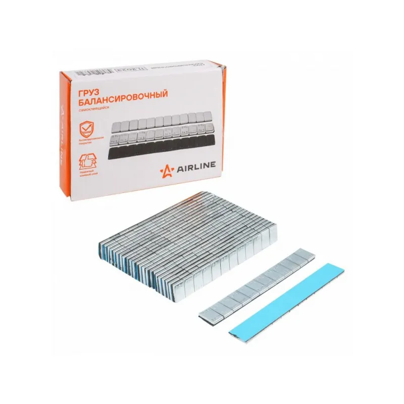 Груз балансировочный самоклеящийся стальной 12*5гр, 50 шт., прямые углы Описание: Грузики для балансировки колес самоклеящиеся, стальные с прямыми углами 12*5г, 50 шт AIRLINE ATRK180 Грузики используются для балансировки колес легковых автомобилей. Цинковое покрытие обеспечивает отличные показатели антикоррозийной устойчивости. В качестве фиксирующего элемента используется высококачественный синий двухсторонний скотч на основе полиэтилена. Балансировочные груза это подвесы, которые используют при проведении балансировочных работы с колесом автомобиля с литыми дисками или штампованными (стальными) дисками. Данный процесс помогает защитить поверхность резины колеса от раннего износа, улучшить сцепление, снизить нагрузку, которая приходится на подшипники и амортизаторы. Применение: Стальные грузы приклеиваются на внутреннюю поверхность обода диска, когда конструкция обода не позволяет разместить грузики для литых дисков с крепежной скобой. Благодаря свойствам металла, груз не подвержен коррозии, устойчив к химическим реагентам. Грузики самоклеющиеся для шиномонтажа. При помощи грузиков балансировочных устраняется дисбаланс и как следствие биение колёс. Преимущества: *не подвержены коррозии; *удобная фасовка; *точный вес грузиков для шиномонтажа; Характеристики: Артикул: ATRK180 Вес полоски, гр: 60 Тип: адгезивный Материал: сталь Комплектация: Груз, 60 гр - 50 шт Коробка - 1 шт Гарантия: от 1 года.