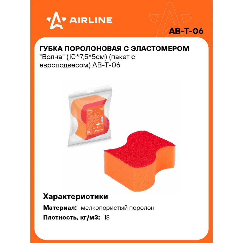 Губка поролоновая с эластомером "Волна" (10*7,5*5см) (пакет с европодвесом) Описание: Губка поролоновая с эластомером "Волна" AIRLINE, изготовленная из ВЫСОКОПРОЧНОГО мелкопористого поролона, позволит очистить с поверхности фар и стекол автомобиля мелких насекомых или различного рода пятна и разводы. Поры на губке выполнены в максимально мелком размере, что создает барьер для попадания на поверхность изделия нежелательных элементов, предотвращая жесткость рабочей поверхности. Эластомер - специальный материал, достаточно твердый для уборки трудноудаляемой грязи, но менее твердый, чем стекло автомобиля. Поэтому ее можно использовать для уборки и очистки стекол и фар без следов и царапин. Характеристики: Артикул: AB-T-06 Длина, см: 10 Ширина, см: 7,5 Высота, см: 5 Материал: мелкопористый поролон Плотность, кг/м3: 18 Комплектация: Губка поролоновая - 1 шт Бумажная вкладка - 1 шт Пакет с европодвесом - 1 шт Гарантия: от 1 года.