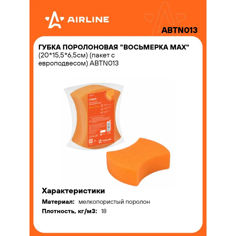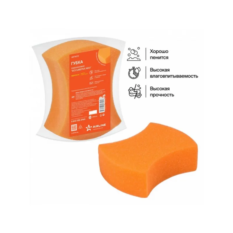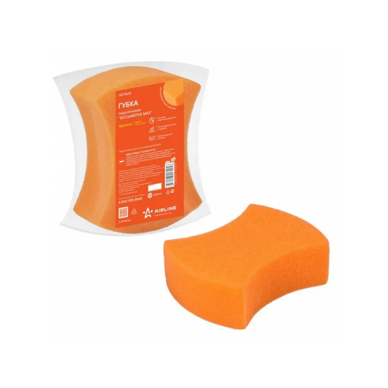 Губка поролоновая "Восьмерка MAX" (20*15,5*6,5см) (пакет с европодвесом) Описание: Губка поролоновая "Восьмерка MAX" AIRLINE оранжевого цвета в форме "восьмерки" отличается увеличенным размером для ПРОФЕССИОНАЛЬНОГО применения. Губка изготовлена из ВЫСОКОПРОЧНОГО мелкопористого поролона - это доступное и качественное средство для избавления от загрязнений на поверхности стекол, фар и корпуса автомобиля. Губка обладает особой поверхностью, которая легко и плавно очищает автомобиль, не создавая после уборки царапин или разводов. Имеет высокую влаговпитываемость и легко отжимается, хорошо пенится. Характеристики: Артикул: ABTN013 Длина, см: 20 Ширина, см: 15,5 Высота, см: 6,5 Материал: мелкопористый поролон Плотность, кг/м3: 18 Комплектация: Губка поролоновая в ПЭ пакете с бумажным вкладышем - 1 шт Гарантия: от 1 года.