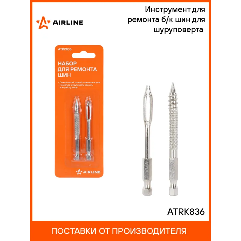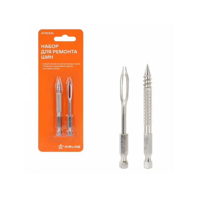 Инструмент для ремонта б/к шин для шуруповерта (сверло-напильник, шило для жгута) Описание: Набор используется для ремонта проколов в шинах с помощью дрели. Набор позволяет без усилий отремонтировать любые проколы диаметром до 1 см. Подробную инструкцию по применению смотрите по ссылке. Характеристики: Артикул: ATRK836 Ширина, мм: 10 Длина, мм: 70 Комплектация: Насадка шило для жгутов - 1 шт Насадка шило напильник - 1 шт Блистер - 1 шт Гарантия: от 1 года.
