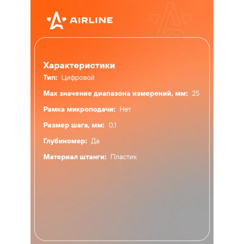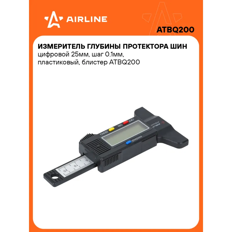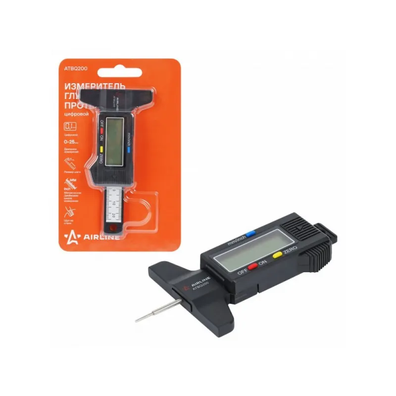 Измеритель глубины протектора шин цифровой 25мм, шаг 0.1мм, пластиковый, блистер Описание: Цифровой измеритель глубины протектора шин AIRLINE ATBQ200 предназначен для определения степени износа шин. Обеспечивает высокую точность измерения до 0,1 мм. Данный измеритель удобен в эксплуатации и может успешно использоваться на СТО, шиномонтаже или автовладельцами в домашних условиях. Питание производится от батареи LR44 AG13. Информация отображается на увеличенном ЖК-дисплее. Абсолютно все измерительные инструменты производятся по единой технологии на современных автоматизированных предприятиях. Тестирование штангенциркулей происходит в собственной современной испытательной лаборатории, что является залогом качества и надежности. Характеристики: Артикул: ATBQ200 Тип: цифровой Min значение диапазона измерений, мм: 0 Max значение диапазона измерений, мм: 25 Рамка микроподачи: нет Размер шага, мм: 0.1 Глубиномер: да Материал штанги: пластик Комплектация: Измеритель глубины протектора в блистере - 1 шт Гарантия: от 1 года.