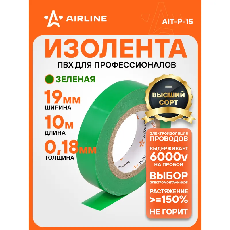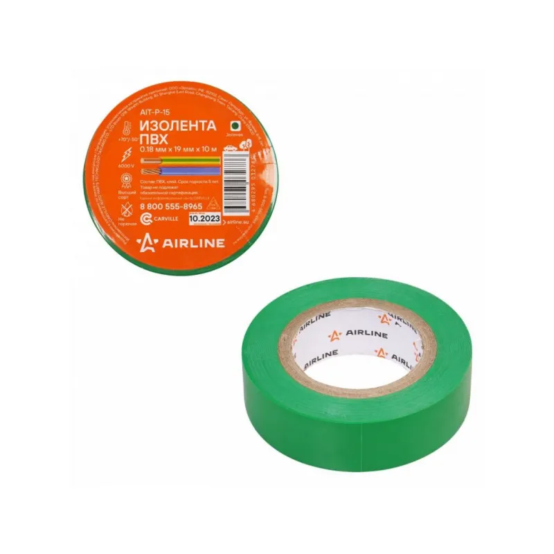 Изолента ПВХ, зеленая, 19 мм*10 м Описание: Изолента зеленая ПВХ, 10 мх19 мм AIRLINE AIT-P-15 - универсальное решение для разных задач, преимущественно используется для обвязки и изоляции проводов. Изоляционная лента ПВХ, которая представлена в широком ассортименте, различается по цветам, ширине ленты и длине намотки. Изолента представляет собой расходный материал, предназначенный для обмотки проводов и кабелей с целью их электроизоляции. Изолента AIRLINE изготавливается из поливинилхлоридной пленки с нанесённым на неё клеевым слоем и полностью соответствует ГОСТу-16214-86. Использование: Для скрутки автопроводки: надежно изолирует соединения. Для компьютера и другого оборудования: защищает провода от повреждений и короткого замыкания. Для обмотки клюшки: улучшает сцепление и защищает клюшку от повреждений. Преимущества: - Высокая термостойкость: выдерживает высокие температуры. - Шумоизоляция и подавление вибрации: идеально подходит для установки автозвука. - Прочное сцепление: надежно крепится даже на рельефных поверхностях. - Эффективность: обеспечивает надежную защиту с минимальным количеством слоев. Инструкция по применению: 1. Очистите поверхность от грязи, пыли и влаги. 2. Плотно намотайте ленту на ремонтируемый участок. Особенности: - Горючесть - не горючая; - Температура использования - -50/+70 С; - Напряжение - 6000 В; - Температура монтажа - +5/+40 °С; - Толщина ленты - 0,18 мм; - Состав - пвх, клей; Товар официального производителя AIRLINE. Автотовар для внешнего тюнинга, который станет отличным подарком автомобилисту, мужчине и женщине, автолюбителю, папе, отцу, мужу, парню и другу. Характеристики: Артикул: AIT-P-15 Ширина, мм: 19 Горючесть: не горючая Температура использования, С: -50/+70 Напряжение, В: 6000 Температура монтажа, °С: +5/+40 Толщина ленты, мм: 0,18 Длина, м: 10 Комплектация: Изолента - 1 шт Термоусадка с вкладышем - 1 шт Гарантия: от 1 года.