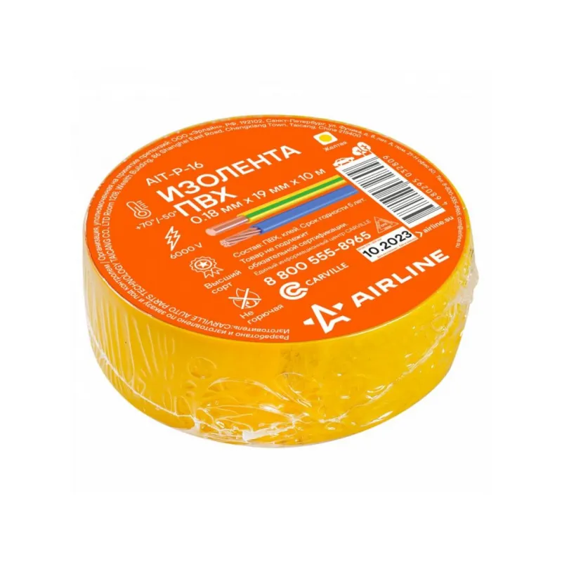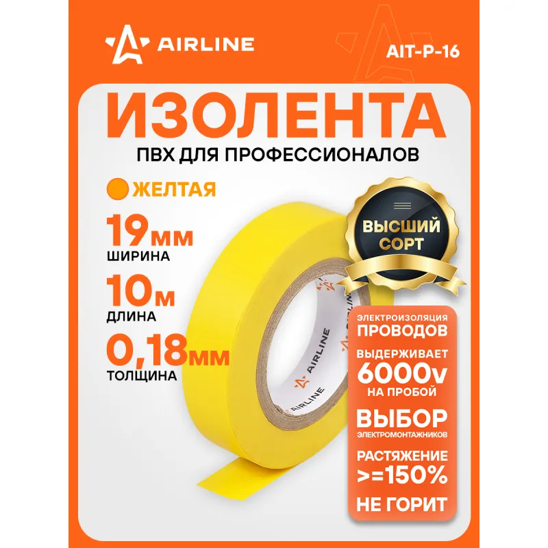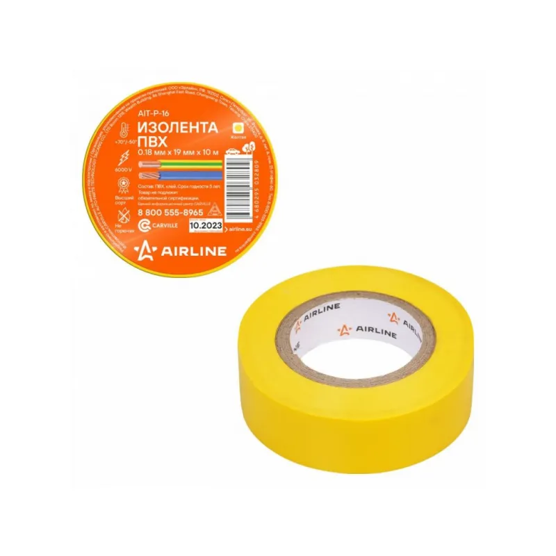 Изолента ПВХ, желтая, 19 мм*10 м Описание: Изолента желтая ПВХ, 10 мх19 мм AIRLINE AIT-P-16 - универсальное решение для разных задач, преимущественно используется для обвязки и изоляции проводов. Изоляционная лента ПВХ, которая представлена в широком ассортименте, различается по цветам, ширине ленты и длине намотки. Изолента представляет собой расходный материал, предназначенный для обмотки проводов и кабелей с целью их электроизоляции. Изолента AIRLINE изготавливается из поливинилхлоридной пленки с нанесённым на неё клеевым слоем и полностью соответствует ГОСТу-16214-86. Использование: Для скрутки автопроводки: надежно изолирует соединения. Для компьютера и другого оборудования: защищает провода от повреждений и короткого замыкания. Для обмотки клюшки: улучшает сцепление и защищает клюшку от повреждений. Преимущества: - Высокая термостойкость: выдерживает высокие температуры. - Шумоизоляция и подавление вибрации: идеально подходит для установки автозвука. - Прочное сцепление: надежно крепится даже на рельефных поверхностях. - Эффективность: обеспечивает надежную защиту с минимальным количеством слоев. Инструкция по применению: 1. Очистите поверхность от грязи, пыли и влаги. 2. Плотно намотайте ленту на ремонтируемый участок. Особенности: - Горючесть - не горючая; - Температура использования - -50/+70 С; - Напряжение - 6000 В; - Температура монтажа - +5/+40 °С; - Толщина ленты - 0,18 мм; - Состав - пвх, клей; Товар официального производителя AIRLINE. Автотовар для внешнего тюнинга, который станет отличным подарком автомобилисту, мужчине и женщине, автолюбителю, папе, отцу, мужу, парню и другу. Характеристики: Артикул: AIT-P-16 Ширина, мм: 19 Горючесть: не горючая Температура использования, С: -50/+70 Напряжение, В: 6000 Температура монтажа, °С: +5/+40 Толщина ленты, мм: 0,18 Длина, м: 10 Комплектация: Изолента - 1 шт Термоусадка с вкладышем - 1 шт Гарантия: от 1 года.