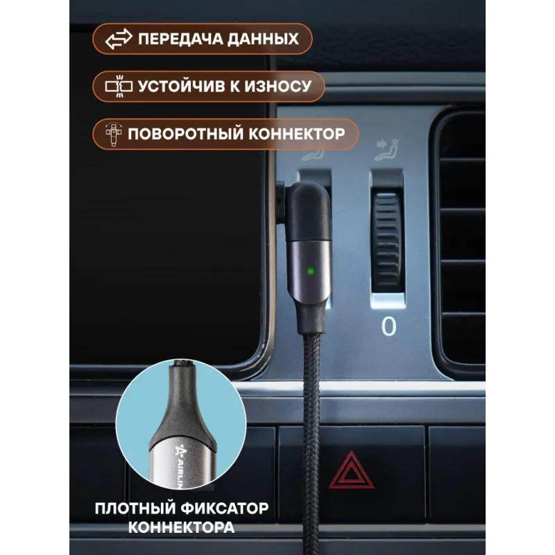 Кабель USB - Lightning (Iphone/IPad) 1м, с поворот. коннектором, черный нейлоновый Описание: Прочный и долговечный кабель 100 см 5 В AIRLINE ACH-M-30 для зарядки и синхронизации - надежный датакабель для вашего устройства. Оптимальный выбор для быстрой зарядки и эффективной передачи данных. Идеален для ежедневного использования благодаря своей устойчивости к износу и высокой функциональности. Кабель с поворотным коннектором AIRLINE предлагает удобство при зарядке вашего смартфона в автомобиле. Его особенный дизайн с поворотным разъемом обеспечивает гибкость и легкость использования, особенно в тех случаях, когда порт зарядки расположен в неудобных местах или под углом. Кабель имеет прочный защитный слой и нейлоновую оплетку. Кабель поможет не только быстро заряжать ваши устройства настольные компьютеры, ноутбуки, планшеты и смартфоны на базе iPhone, iPad или Air Pods, но и быстро передать данные на ваш ПК. Зарядный кабель совместим с большинством моделей смартфонов и планшетов, использующих разъем Lightning для зарядки. Вы сможете использовать его не только в автомобиле, но и дома, в офисе или в путешествиях. Кабель для телефона - это полезный подарок мужу, другу, жене, на 23 февраля, 8 марта, новый год или без повода, если оригинальный провод поврежден. Провод можно использовать как основной или запасной кабель для зарядки дома, в офисе или в автомобиле. Подходит для: iPhone 5/5 S/SE, iPhone 6/6 S/6 Plus/6 S Plus, iPhone 7/7 Plus/8/8 Plus, iPhone X/XS/iPhone ХR/XS MAX, iPhone 11/11 Pro/11 Pro Max, iPhone 12/12 mini/12 Pro/12 Pro Max, iPhone 13/13 mini/13 Pro/13 Pro Max, iPhone 14/14 Pro/14 Pro Max. Характеристики: Артикул: ACH-M-30 Длина кабеля (включая штекер), см: 100 Напряжение питания, В: 5 Комплектация: Бумажный вкладыш - 1 шт Кабель - 1 шт Коробка с навершием - 1 шт Гарантия: от 1 года.