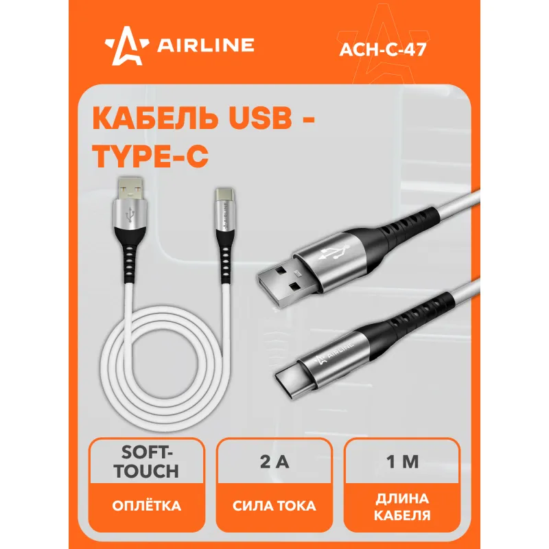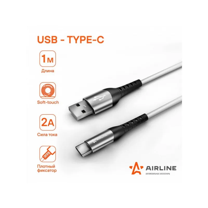 Кабель USB - Type-C 1м, белый Soft-Touch Описание: Прочный и долговечный кабель 100 см 5 В AIRLINE ACH-C-47 для зарядки и синхронизации - надежный датакабель для вашего устройства. Оптимальный выбор для быстрой зарядки и эффективной передачи данных. Идеален для ежедневного использования благодаря своей устойчивости к износу и высокой функциональности. Фиксатор провода на штекере гибкий, благодаря чему провод не будет заламываться и повреждаться при использовании. Кабель имеет прочный защитный слой и нейлоновую оплетку. Кабель поможет не только быстро заряжать ваши устройства настольные компьютеры, ноутбуки, планшеты и смартфоны на базе Android, Samsung, Sony, Huawei, Xiaomi,Lenovo, LG, но и быстро передать данные на ваш ПК. Кабель для телефона - это полезный подарок мужу, другу, жене, на 23 февраля, 8 марта, новый год или без повода, если оригинальный провод поврежден. В линейке AIRLINE, вы найдете широкий ассортимент высококачественных автотоваров для вашего автомобиля автомобильные адаптеры, кабели USB Lightning, Type C, Micro USB. Мы гарантируем качество и надежность наших товаров. Характеристики: Артикул: ACH-C-47 Длина кабеля (включая штекер), см: 100 Напряжение питания, В: 5 Комплектация: Кабель - 1 шт Коробка с навершием - 1 шт Гарантия: от 1 года.