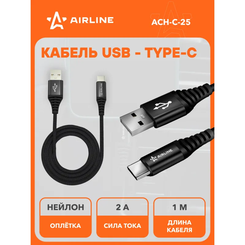 Кабель USB - Type-C 1м, черный нейлоновый Описание: Прочный и долговечный кабель 100 см 5 В AIRLINE ACH-C-25 для зарядки и синхронизации - надежный датакабель для вашего устройства. Оптимальный выбор для быстрой зарядки и эффективной передачи данных. Идеален для ежедневного использования благодаря своей устойчивости к износу и высокой функциональности. Фиксатор провода на штекере гибкий, благодаря чему провод не будет заламываться и повреждаться при использовании. Кабель имеет прочный защитный слой и нейлоновую оплетку. Кабель поможет не только быстро заряжать ваши устройства настольные компьютеры, ноутбуки, планшеты и смартфоны на базе Android, Samsung, Sony, Huawei, Xiaomi,Lenovo, LG, но и быстро передать данные на ваш ПК. Кабель для телефона - это полезный подарок мужу, другу, жене, на 23 февраля, 8 марта, новый год или без повода, если оригинальный провод поврежден. В линейке AIRLINE, вы найдете широкий ассортимент высококачественных автотоваров для вашего автомобиля автомобильные адаптеры, кабели USB Lightning, Type C, Micro USB. Мы гарантируем качество и надежность наших товаров. Характеристики: Артикул: ACH-C-25 Длина кабеля (включая штекер), см: 100 Напряжение питания, В: 5 Комплектация: Кабель - 1 шт Коробка с навершием - 1 шт Гарантия: от 1 года.