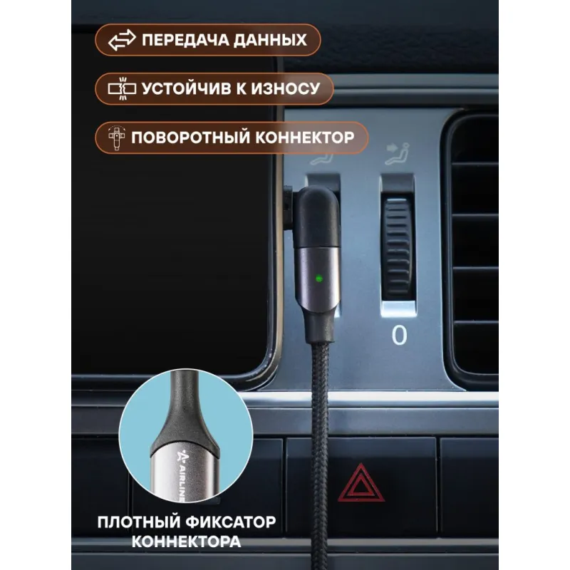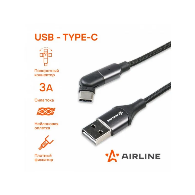 Кабель USB - Type-C 1м, с поворот. коннектором, черный нейлоновый Описание: Прочный и долговечный кабель 100 см 5 В AIRLINE ACH-M-29 для зарядки и синхронизации - надежный датакабель для вашего устройства. Оптимальный выбор для быстрой зарядки и эффективной передачи данных. Идеален для ежедневного использования благодаря своей устойчивости к износу и высокой функциональности. Кабель с поворотным коннектором AIRLINE предлагает удобство при зарядке вашего смартфона в автомобиле. Его особенный дизайн с поворотным разъемом обеспечивает гибкость и легкость использования, особенно в тех случаях, когда порт зарядки расположен в неудобных местах или под углом. Зарядный кабель совместим с большинством моделей смартфонов, планшетов, видеорегистраторов, радар детекторов и прочих устройств, использующих разъем Type-C для зарядки. Вы сможете использовать его не только в автомобиле, но и дома, в офисе или в путешествиях. Кабель имеет прочный защитный слой и нейлоновую оплетку. Кабель поможет не только быстро заряжать ваши устройства настольные компьютеры, ноутбуки, планшеты и смартфоны на базе Android, Samsung, Sony, Huawei, Xiaomi,Lenovo, LG, но и быстро передать данные на ваш ПК. Кабель для телефона - это полезный подарок мужу, другу, жене, на 23 февраля, 8 марта, новый год или без повода, если оригинальный провод поврежден. Характеристики: Артикул: ACH-M-29 Длина кабеля (включая штекер), см: 100 Напряжение питания, В: 5 Комплектация: Бумажный вкладыш - 1 шт Кабель - 1 шт Коробка с навершием - 1 шт Гарантия: от 1 года.