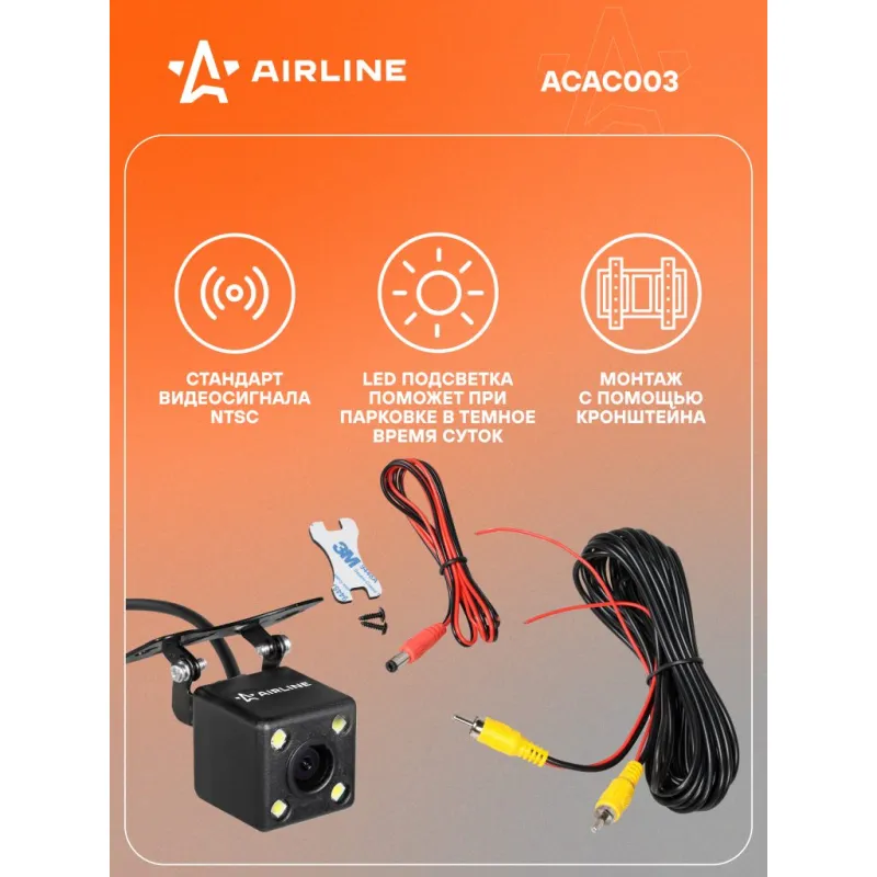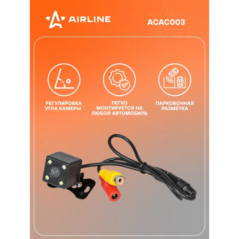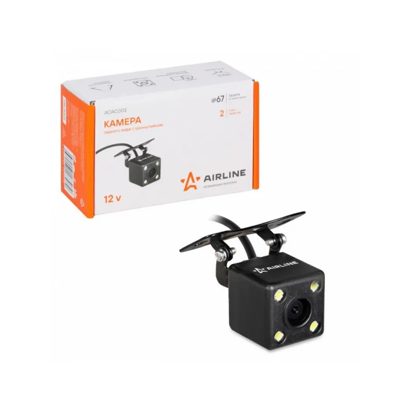 Камера заднего вида c кронштейном Описание: Камера заднего вида 12 В очень облегчает парковку задним ходом как новичков, так и опытных водителей. Камера незаметно устанавливается в / или под бампер вашего автомобиля, а провод, который идет в комплекте, протягивается через салон и подключается к вашему дополнительному или штатному дисплею. Ориентируясь по передаваемому видео, водитель безопасно совершает маневр. Подойдет для начинающих и неуверенных водителей совершать маневры на парковке и в узких проездах. Камера заднего подойдет к любому автомобилю и не будет заметна на корпусе. Аксессуар легко монтируется на любой автомобиль. Основные преимущества данной модели ACAC003: * Камера монтируется в заднюю часть автомобиля с помощью гайки, которую нужно закрутить в ответной части камеры; * Светодиоды, расположенные на камере помогут вам при парковке в темное время суток; * Кронштейн с регулировкой угла камеры; * Угол обзора 170С; * LED подсветка, 4 светодиода, расположенных на камере помогут вам при парковке в темное время суток; * Парковочная разметка; * Стандарт защиты IP67; * Тип установки С помощью кронштейна; * Стандарт видеосигнала - NTSC; * Минимальная освещенность - 0,2 люкс; Товар официального производителя AIRLINE. Инструкция по эксплуатации и установке в комплекте. Автотовар для внешнего тюнинга, который станет отличным подарком автомобилисту, мужчине и женщине, автолюбителю, папе, отцу, мужу, парню и другу. Характеристики: Артикул: ACAC003 Минимальная освещенность, люкс: 0,2 Угол обзора, °: 170 Стандарт видеосигнала: NTSC Напряжение питания, В: 12 Разрешение ТВЛ: 480 Разрешение: 640х480 Стандарт защиты: IP67 Тип установки: С помощью кронштейна Комплектация: Камера заднего вида - 1 шт Провод удлинителя питания (12В +) - 1 шт Провод удлинителя видеосигнала - 1 шт Инструкция на русском языке - 1 шт Гарантийный талон - 1 шт Коробка - 1 шт Гарантия: от 1 года.
