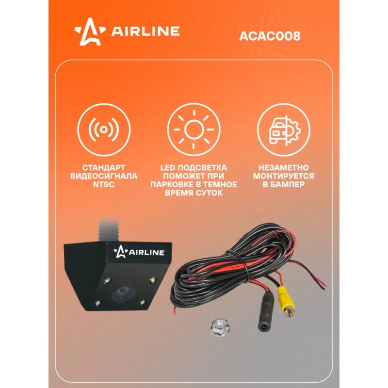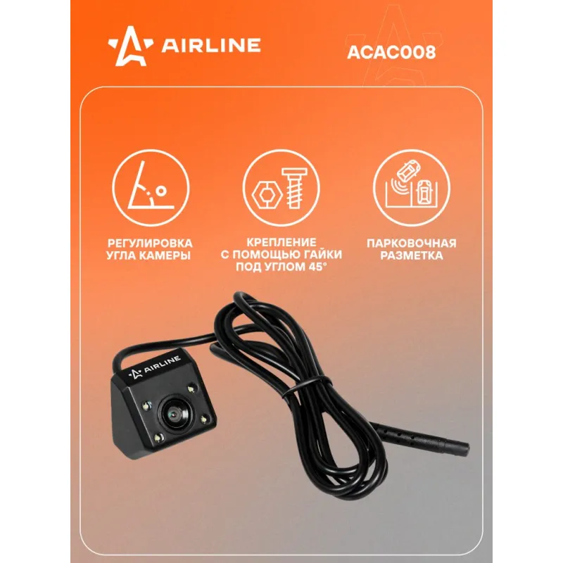 Камера заднего вида под 45 градусов крепление - гайка Описание: Камера заднего вида 12 В очень облегчает парковку задним ходом как новичков, так и опытных водителей. Камера незаметно устанавливается в / или под бампер вашего автомобиля, а провод, который идет в комплекте, протягивается через салон и подключается к вашему дополнительному или штатному дисплею. Ориентируясь по передаваемому видео, водитель безопасно совершает маневр. Подойдет для начинающих и неуверенных водителей совершать маневры на парковке и в узких проездах. Камера заднего подойдет к любому автомобилю и не будет заметна на корпусе. Аксессуар легко монтируется на любой автомобиль. Основные преимущества данной модели ACAC008: * Камера монтируется в заднюю часть автомобиля с помощью гайки, которую нужно закрутить в ответной части камеры; * Светодиоды, расположенные на камере помогут вам при парковке в темное время суток; * Камера будет незаметно вмонтирована в бампер; Камера монтируется (врезается) под 45°; * Угол обзора 170С; * LED подсветка; * Парковочная разметка; * Стандарт защиты IP68; * Тип установки С помощью гайки; * Стандарт видеосигнала - NTSC; * Минимальная освещенность - 0,2 люкс; Товар официального производителя AIRLINE. Инструкция по эксплуатации и установке в комплекте. Автотовар для внешнего тюнинга, который станет отличным подарком автомобилисту, мужчине и женщине, автолюбителю, папе, отцу, мужу, парню и другу. Характеристики: Артикул: ACAC008 Минимальная освещенность, люкс: 0,2 Угол обзора, °: 170 Стандарт видеосигнала: NTSC Напряжение питания, В: 12 Разрешение ТВЛ: 480 Разрешение: 640x480 Стандарт защиты: IP68 Тип установки: С помощью гайки Комплектация: Камера заднего вида - 1 шт Провод удлинителя питания (12В +) - 1 шт Провод удлинителя видеосигнала - 1 шт Гарантийный талон - 1 шт Инструкция на русском языке - 1 шт Коробка - 1 шт Гарантия: от 1 года.