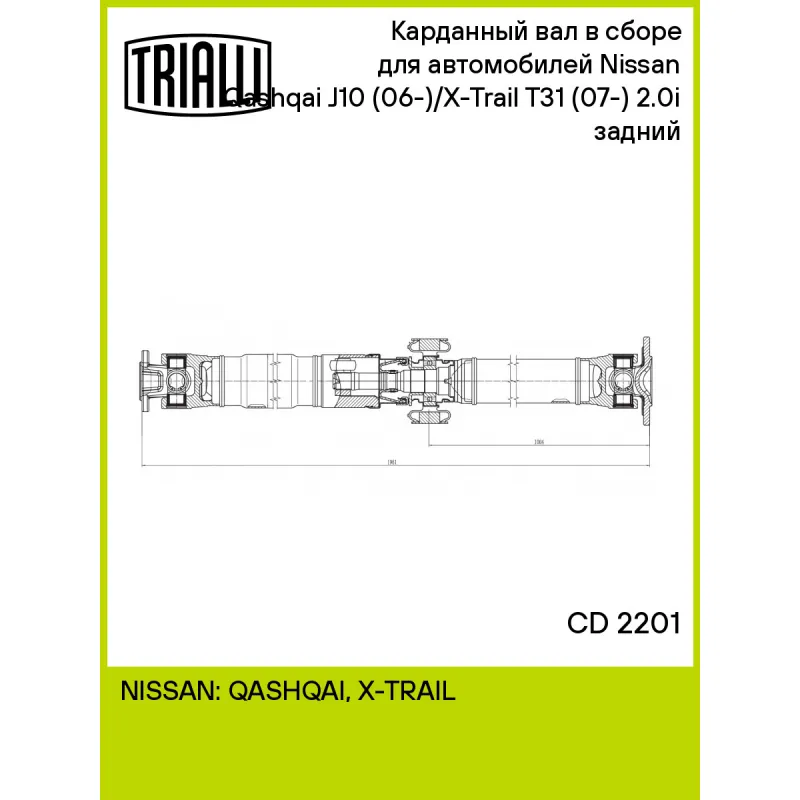 Карданный вал в сборе для автомобилей Nissan Qashqai J10 (06-)/X-Trail T31 (07-) 2.0i (4x4) задний Характеристики: Артикул: CD 2201 OEM номера: 37000-BR52A, 37000-JD200, 370001DA0B, 370001DB0E, 37000BR50A, 37000BR50B, 37000JG00A Материал: Сталь, резина Особенности конструкции:: ШРУС/Крестовина Длина (мин.): 1961 Диаметр вала: 70... Читать полностью →