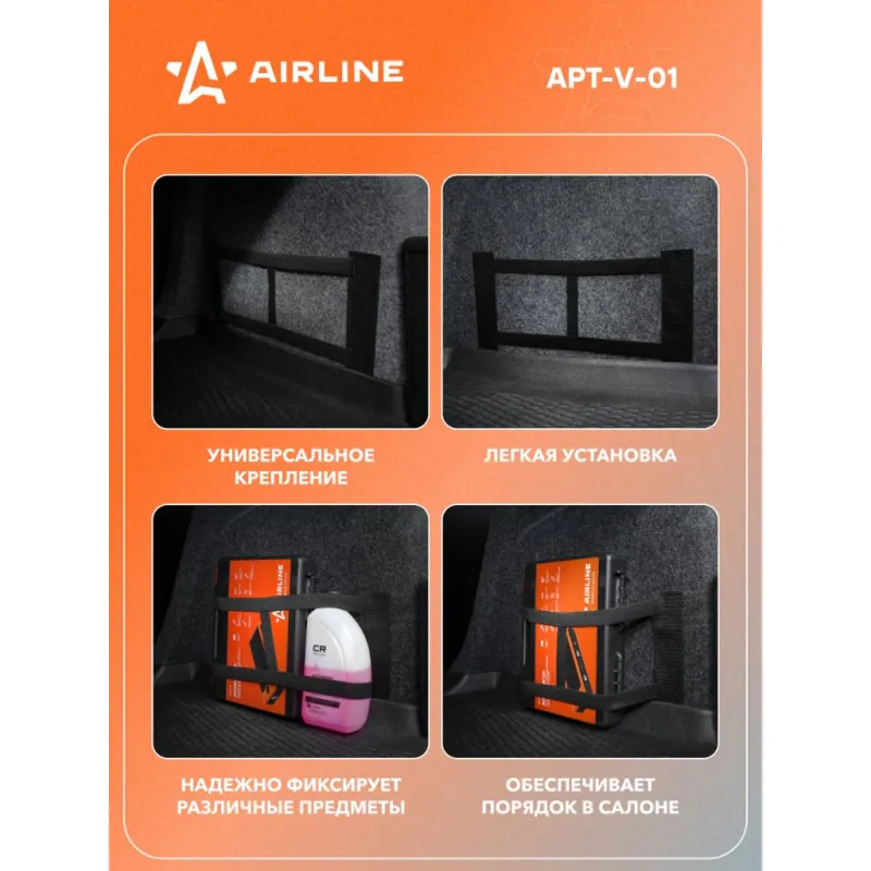 Карман в багажник на липучке с адаптером, универсальный (18*35 см) Описание: Карман в багажник на липучке APT-V-01 бренда Airline подходит для любых автомобилей с ворсовым покрытием. Дополнительный карман в багажник предназначен для фиксации различного рода предметов, таких как огнетушители малых объемов, баллончики автохимии, перчатки, салфетки и т.д. Основным преимуществом автомобильного кармана является, что что в нем можно хранить предметы в вертикальном положении. Карман в багажник легко устанавливается и не занимает много места. В комплекте прилагается два адаптера с двойным скотчем для автомобилей, не имеющих ворсового покрытия в багажнике. Преимущества: -Универсальное крепление; -Легко устанавливается и регулируется; -Надежно фиксирует различные предметы; -Обеспечит порядок в багажнике; Органайзер в автомобиль повысит уровень комфорта во время путешествий и ежедневных поездок, поэтому станет нужным полезным подарком автомобилисту, мужу, папе, бату, дяде, жене, маме, сестре, тете, коллеге. Этот аксессуар для машины - это универсальный подарок на любой праздник. Характеристики: Артикул: APT-V-01 Вид крепления: липучка, двойной скотч Длина, мм: 350 Высота, мм: 180 Тип корпуса: складной Место установки: салон, багажник Цвет: черный Размер: универсальный Количество молний: 2 Комплектация: Карман на липучке - 1 шт Адаптер - 2 шт ПЭ пакет с вкладышем - 1 шт Гарантия: от 1 года.