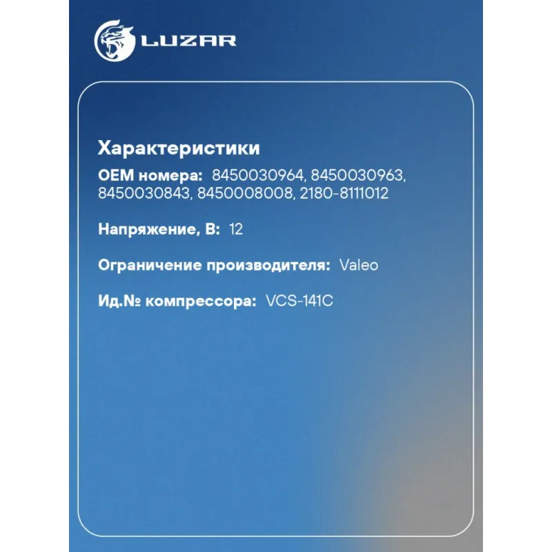 | Совместим с компрессорами кондиционера | 8450030963, 2180-8111012, 8450008008, 8450030843, 8450030964 |