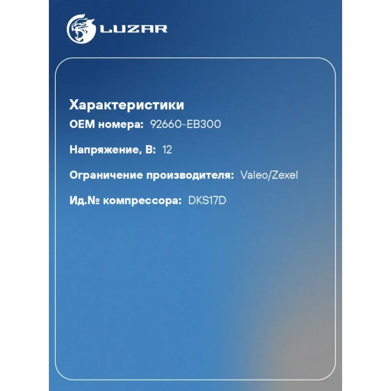 | Совместим с компрессорами кондиционера | 92600-EB01A, 92660-EB01B, 92660-EB300 |