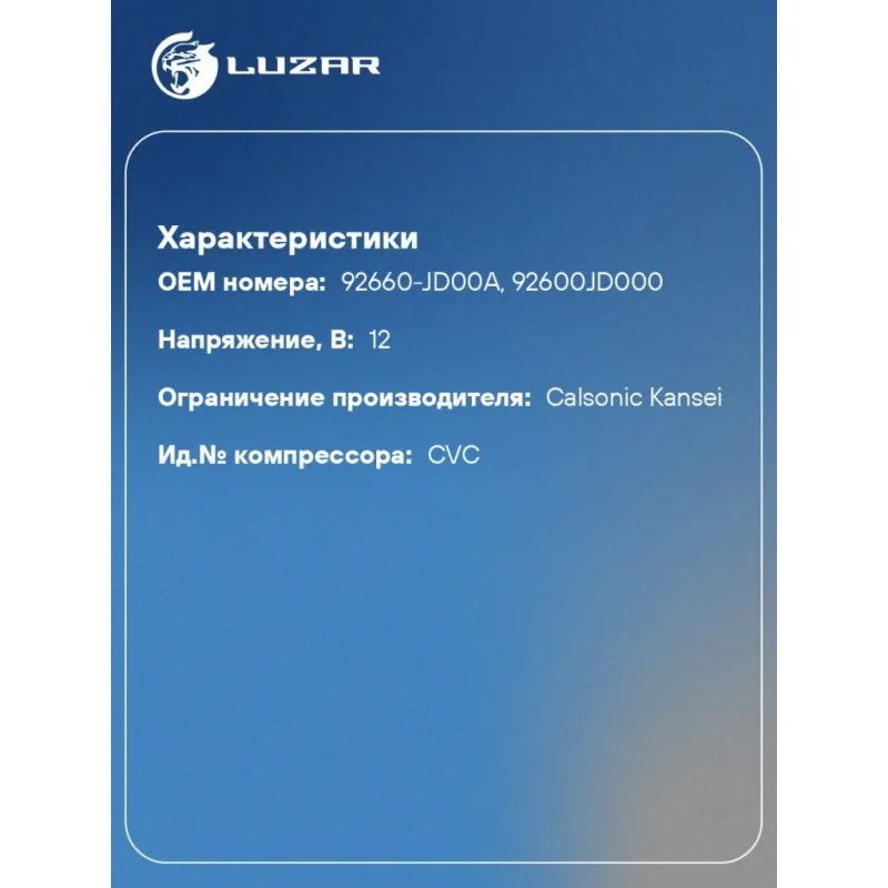 | Совместим с компрессорами кондиционера | 92600JD000, 92660-JD00A |