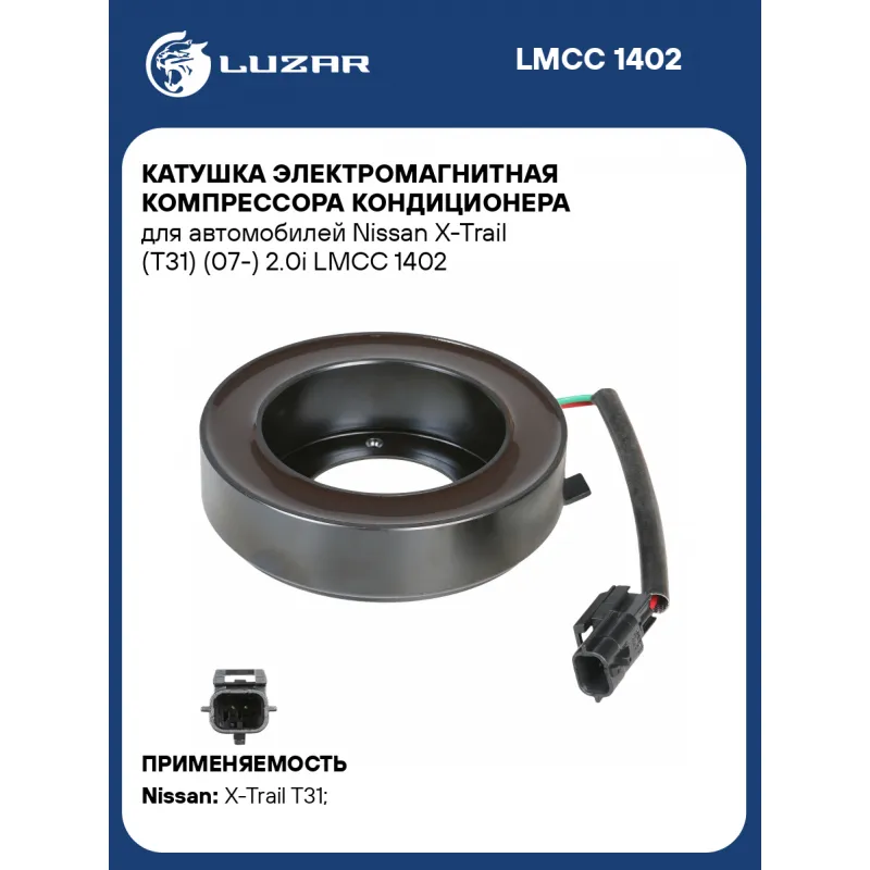 Катушка электромагнитная компрессора кондиционера для автомобилей Nissan X-Trail (T31) (07-) 2.0i Характеристики: Артикул: LMCC 1402 OEM номера: 92660-EN20B, 92600EN22A, 92660-EN20C Количество на автомобиль: 1 Напряжение, В: 12 Ограничение производителя: Valeo/Zexel Ид.№ компрессора: DCS-17EC Совместимость с компрессорами LUZAR: Несовместим Совместим с компрессорами кондиционера: 92660-EN20B, 92660-EN20C, 92600EN22A Подходит для авто: Nissan X-Trail T31 (07-) Для проверки применяемости отправьте VIN автомобиля через вкладку "Есть вопросы о товаре?" Комплектация: Катушка электромагнитная - 1 шт Гарантия: от 1 года.